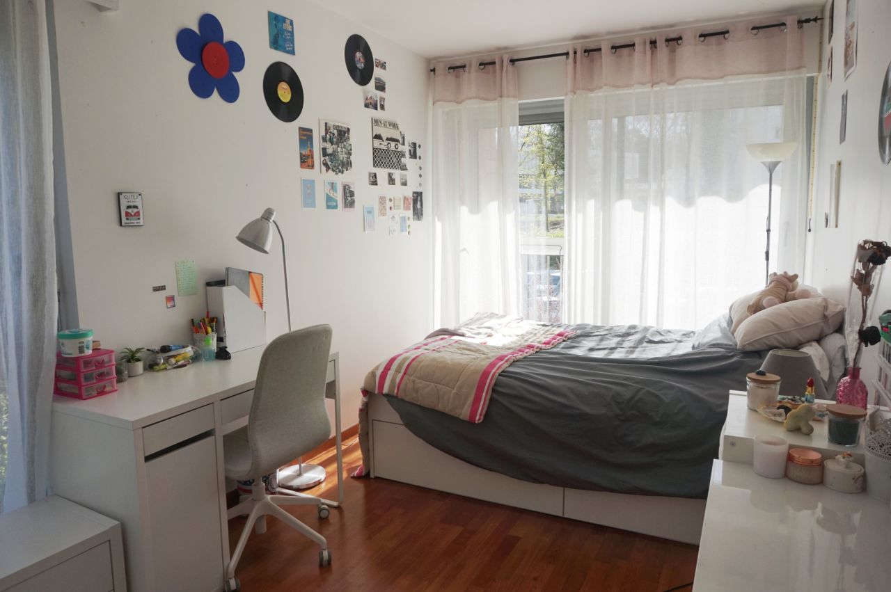 Situation idéale pour cet appartement de 4 pièces situé dans un petit immeuble (3 étages), à proximité de la gare, des commerces et des écoles (primaire, collège et lycée).Appartement lumineux, comprenant : entrée, cuisine, séjour double donnant sur un balcon exposé Sud / Ouest, dégagement, 2 chambres (10.50 et 12.50 m2), salle de bains et salle d'eau / buanderie, wc indépendant, nombreux placards.